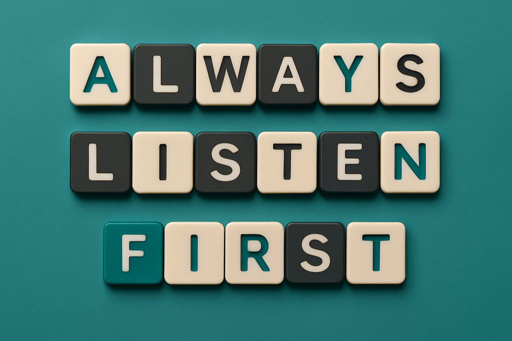 In your next project, or even your next client conversation, make “Listen First” your guiding principle. Before mentioning a technical solution, commit to asking three thoughtful, open-ended questions that uncover deeper priorities and pain points. Validate what you’ve heard, resist the urge to leap straight into action, and align your approach with the client’s broader goals.